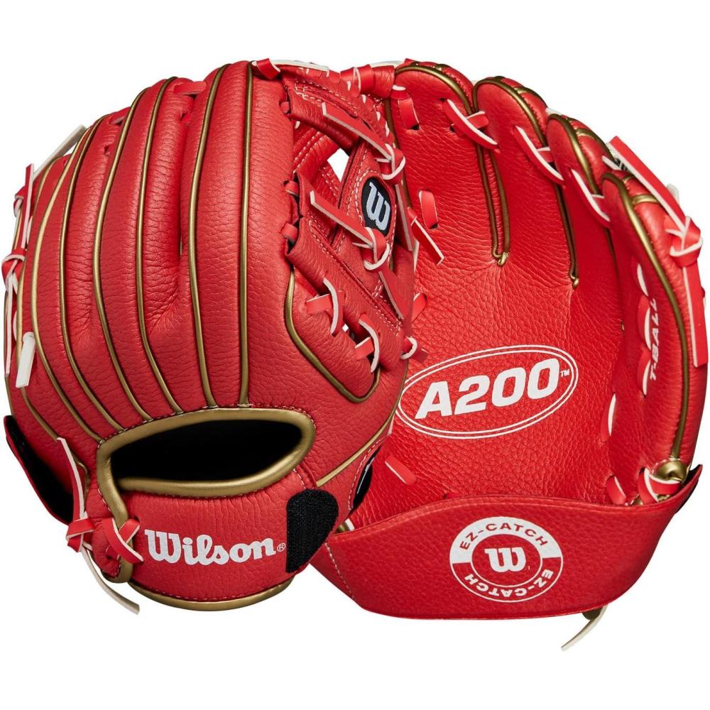 Wilson A200 Youth 10″ Baseball Glove(Red/Metallic Gold)
