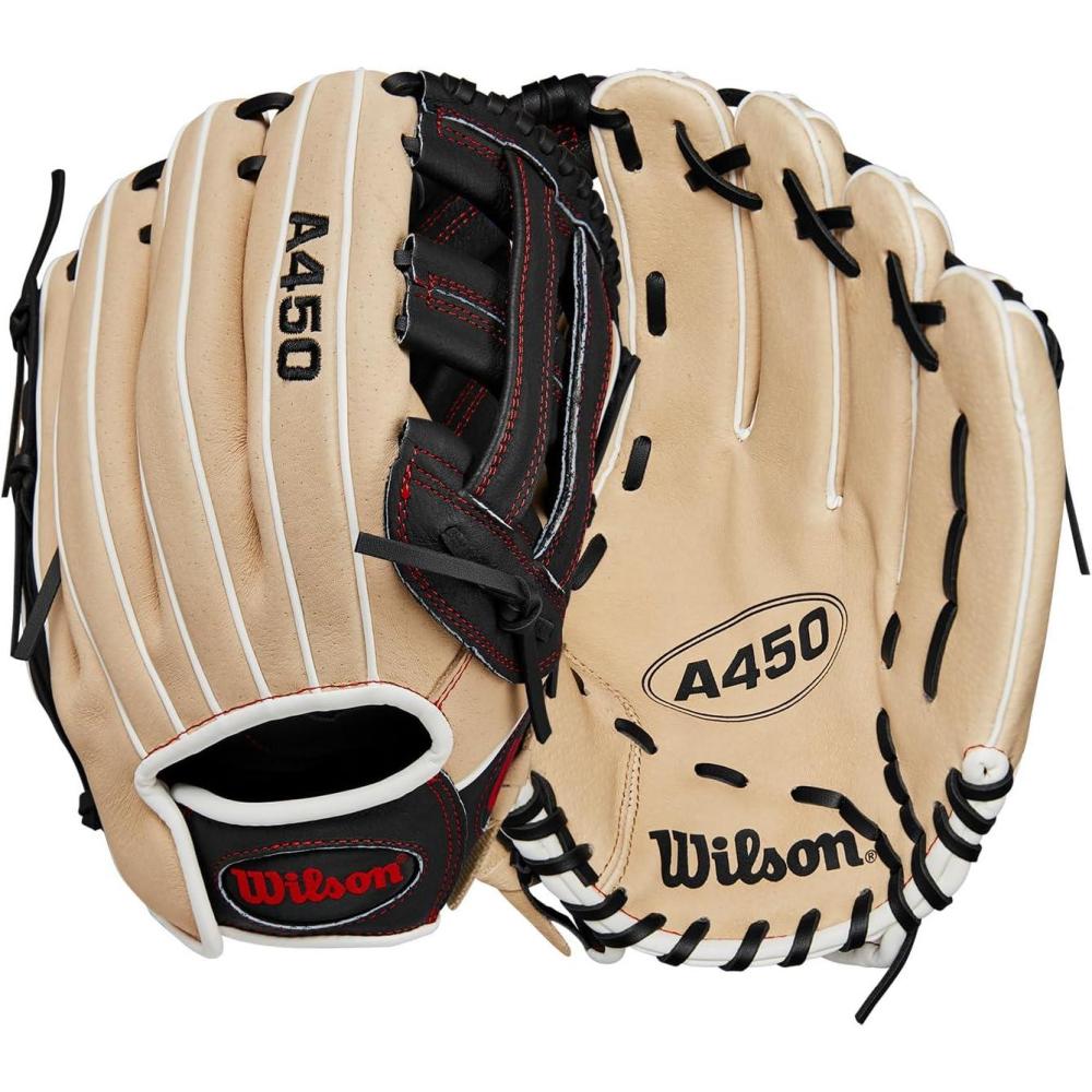 Wilson 2024 A450 12” Youth Outfield Baseball Glove – Right Hand Throw, Blonde/Black/Red
