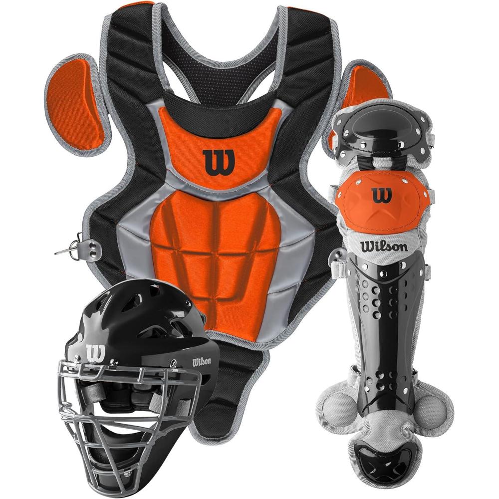 WILSON C200 Youth Catcher’s Gear Kit – Black/Orange