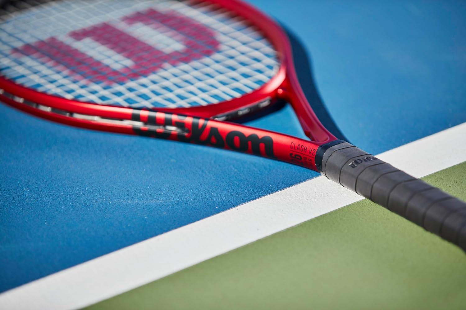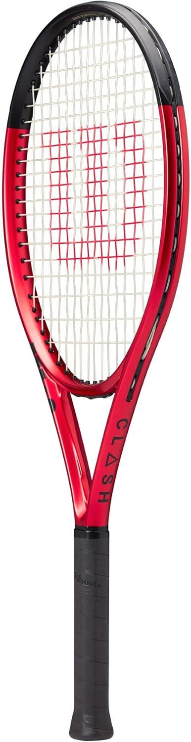 The Clash 26 V2 sets the bar high for design, comfort and game-changing performance in junior rackets. Coated with a rich red finish for a sleek look on the court, this racket feels remarkably arm-friendly thanks to its FORTYFIVE° carbon construction. This layup creates maximum flexibility and stability through the swing, which enables young players to swing aggressively and confidently without spraying the ball. Tip of hoop features revised construction for an enlarged sweet spot, permitting more forgiveness on off-center contact. Racket features Agiplast plant-based end cap, bumper and grommets to add an element of sustainability and reduce its overall environmental footprint.