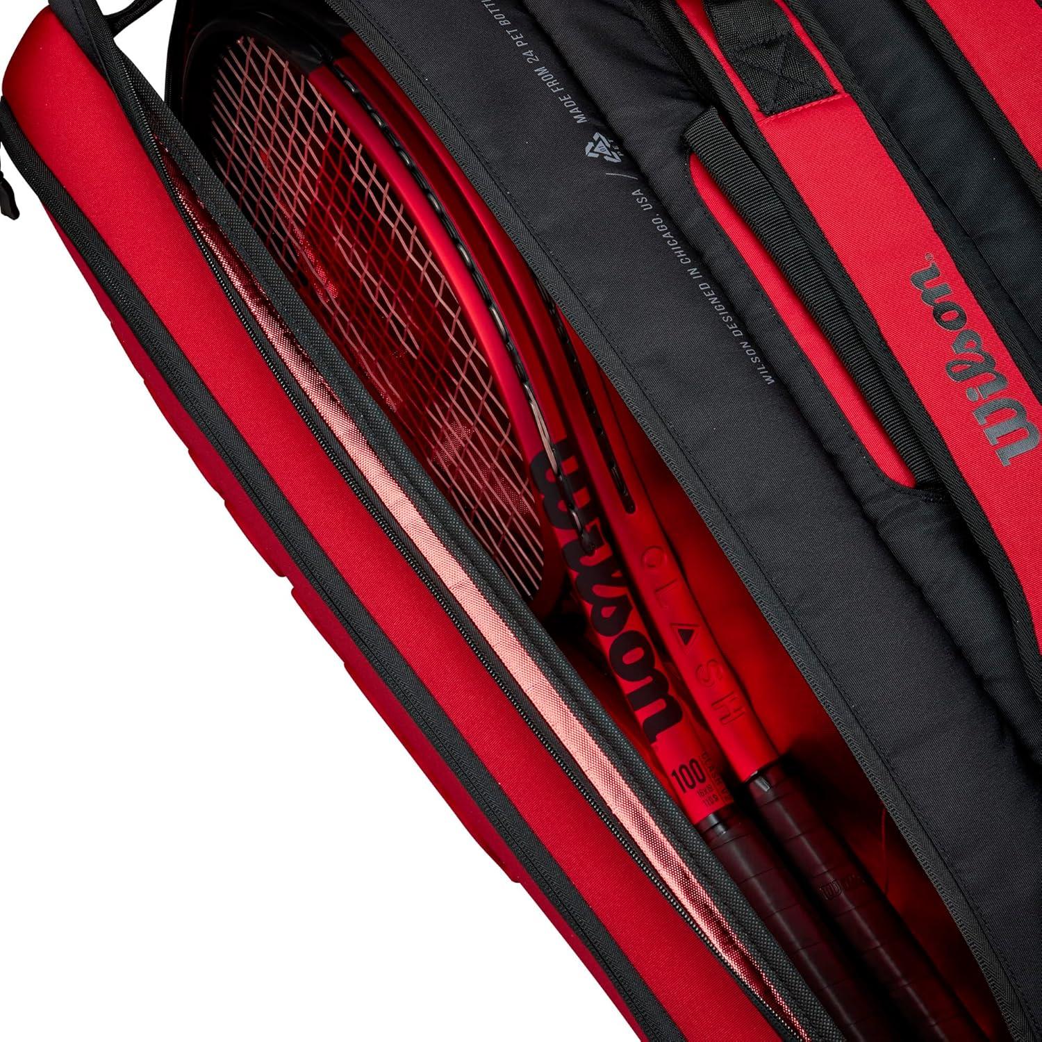 Wilson Clash V2 Super Tour Tennis Racket Bag – Red/Black, Holds up to 15 Rackets