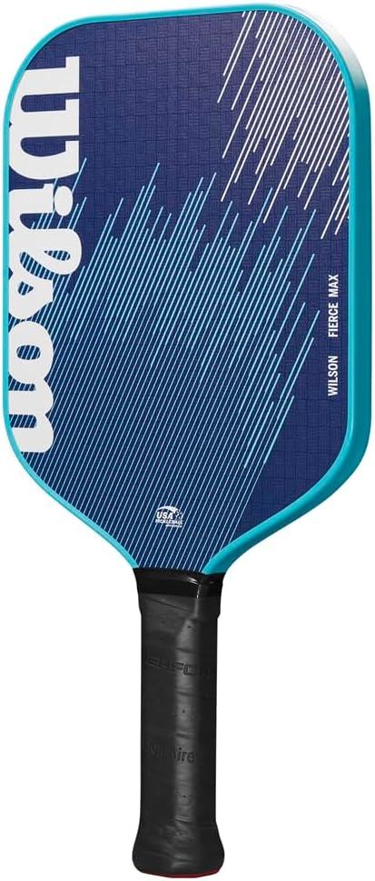Unleash the beast with the Wilson Fierce MAX Pickleball Paddle. This paddle is designed to help beginner-to-intermediate players take their game to the next level. Its balanced dimensions and generous sweet spot make it easy to get in a clean hit, which is backed by a responsive core. The textured fiberglass hitting surface is perfect for adding more power to your hits without sacrificing spin. Get a grip with the hybrid handle length that enables powerful 2-handed backhand shots while maintaining a maneuverable profile. Paddle Weight: 8.25oz Paddle Length: 16″ Paddle Width: 8″ Surface Material: Textured Fiberglass Core Thickness: 13mm Core Material: Polypropylene Honeycomb Handle Length: 5.2″ Grip Size: 4 1/4″ Shape: Standard
