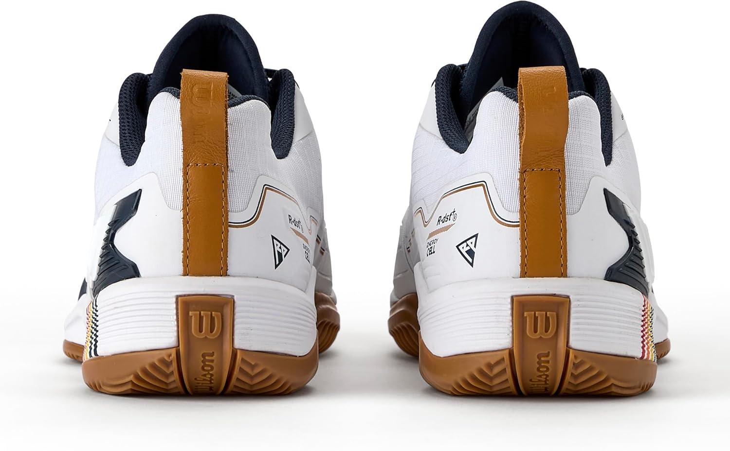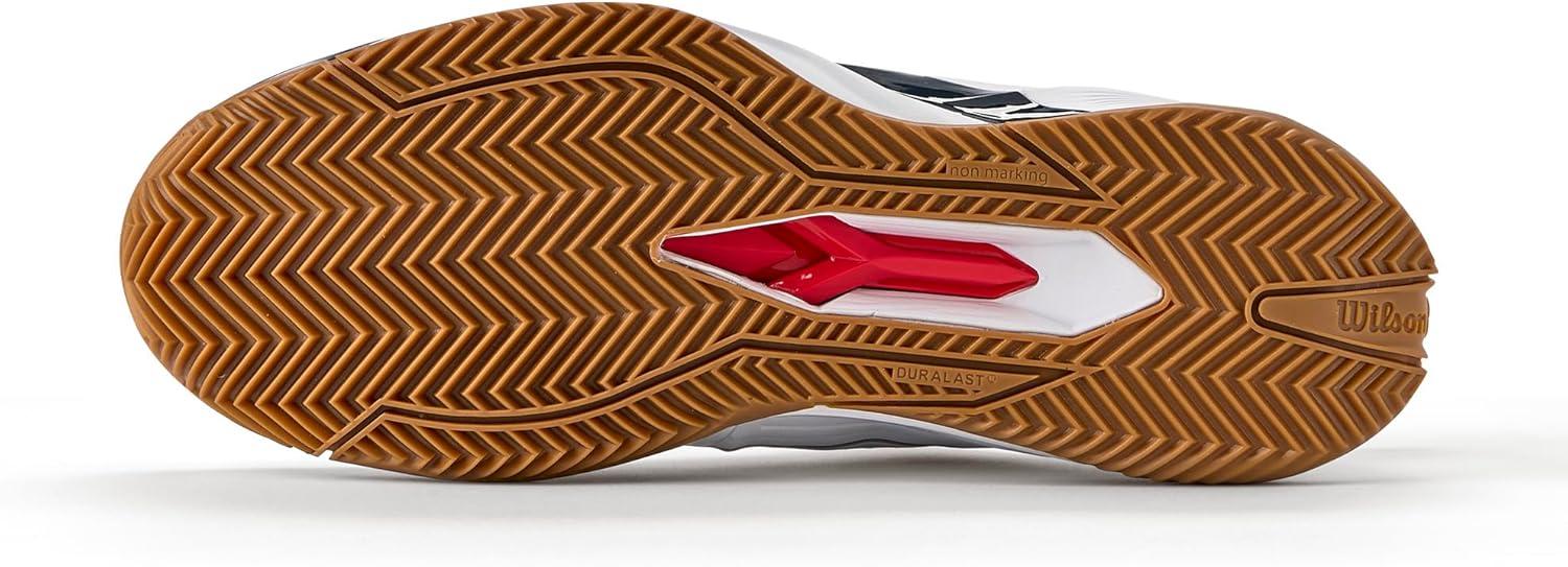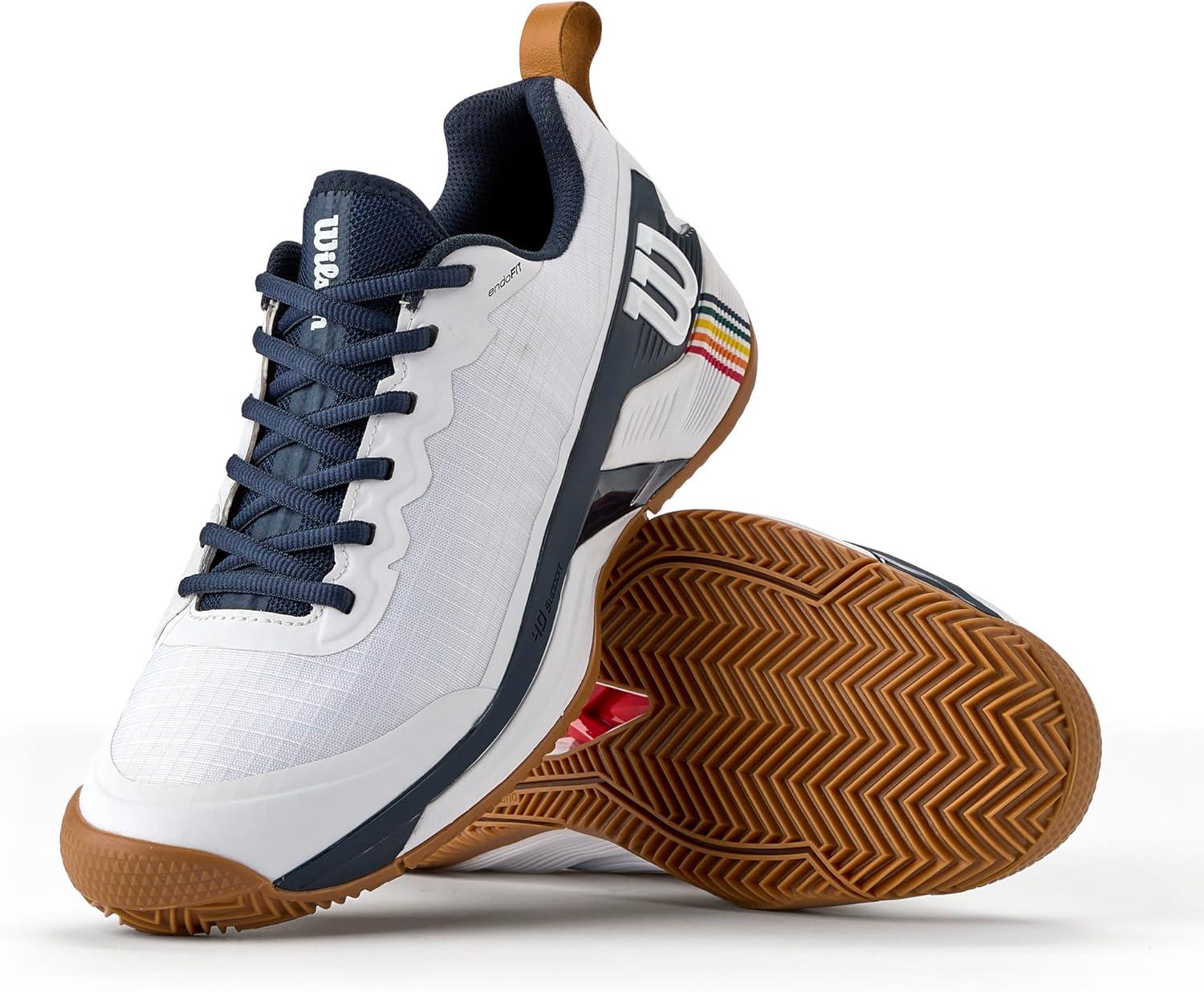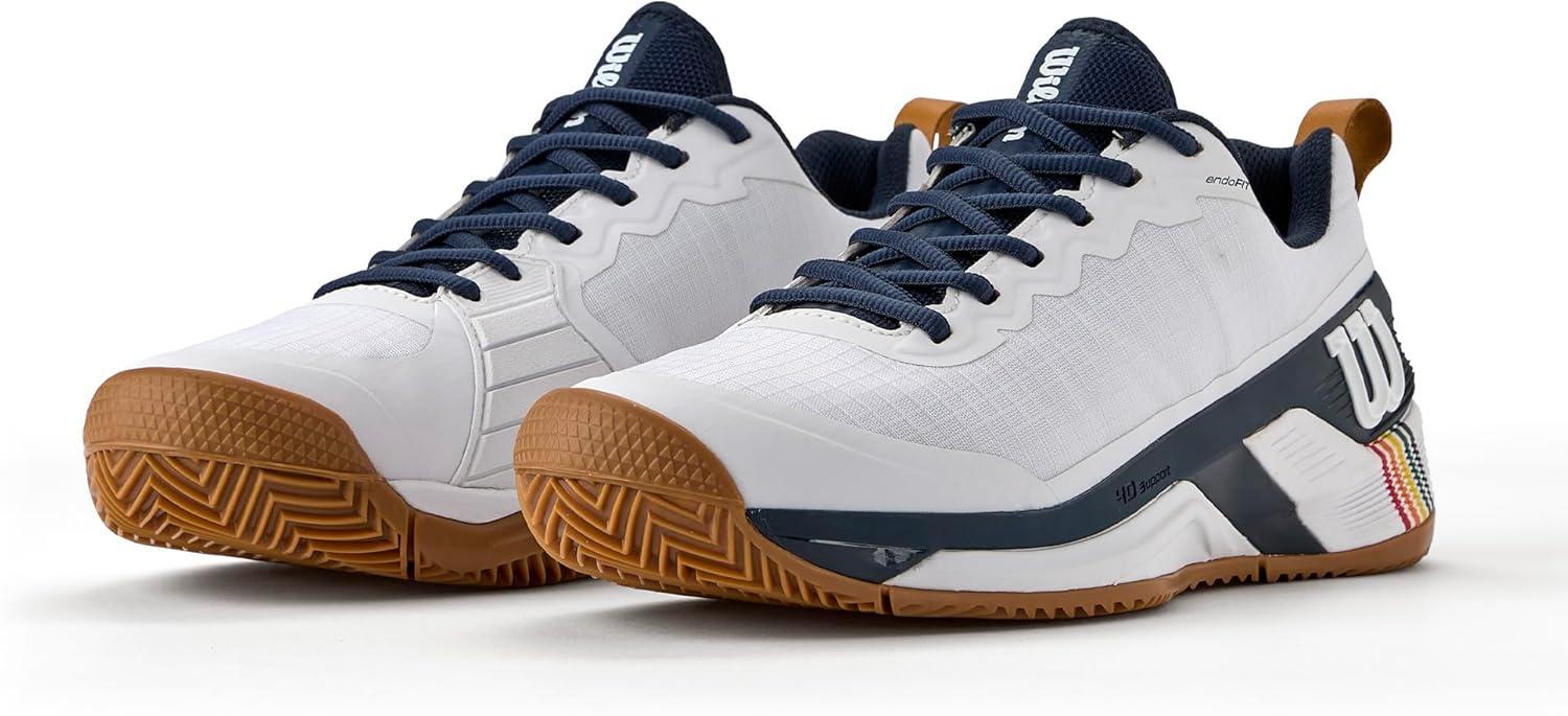 Continuing the evolution of our best-selling franchise, the Rush Pro 4.5 builds on the innovations of the 4.0 with new upgrades that improve breathability, support and abrasion resistance. The engineered mesh upper has a graduated pattern, with a larger hole mesh toward the front to promote airflow and a tighter mesh toward the heel for support. A larger, integrated medial mud guard provides all-around protection and support, while the enlarged rubber drag pad on the lateral side is extra thick to resist abrasion and anatomically shaped to follow the foot's profile. The Lightweight Energy Cell EVA foam under the forefoot provides cushioning on impact, then responds to help you spring back into position. Sleek, durable and providing multidirectional support, this Rush Pro 4.5 puts your game on a great foundation, especially on clay court surfaces.