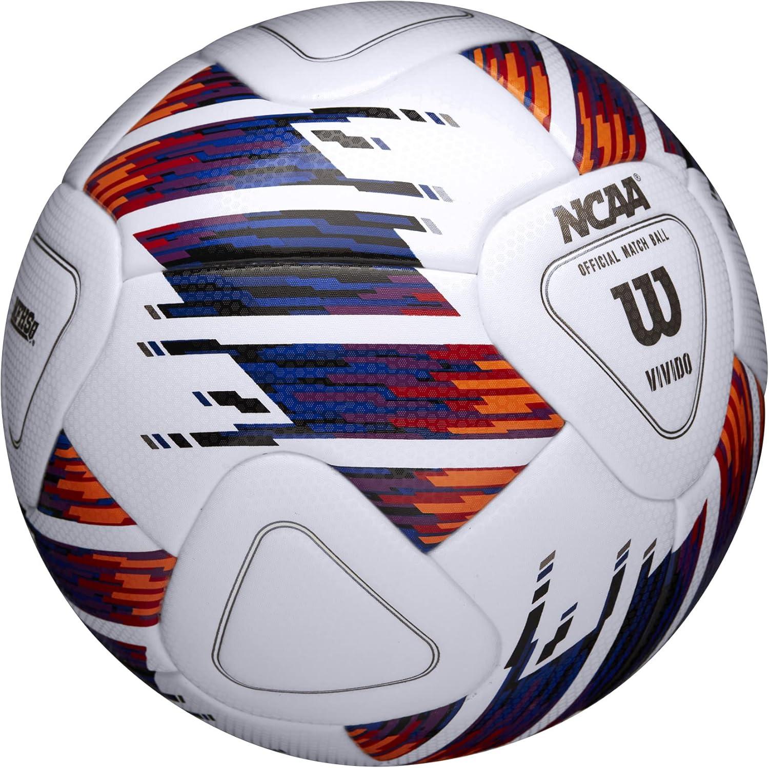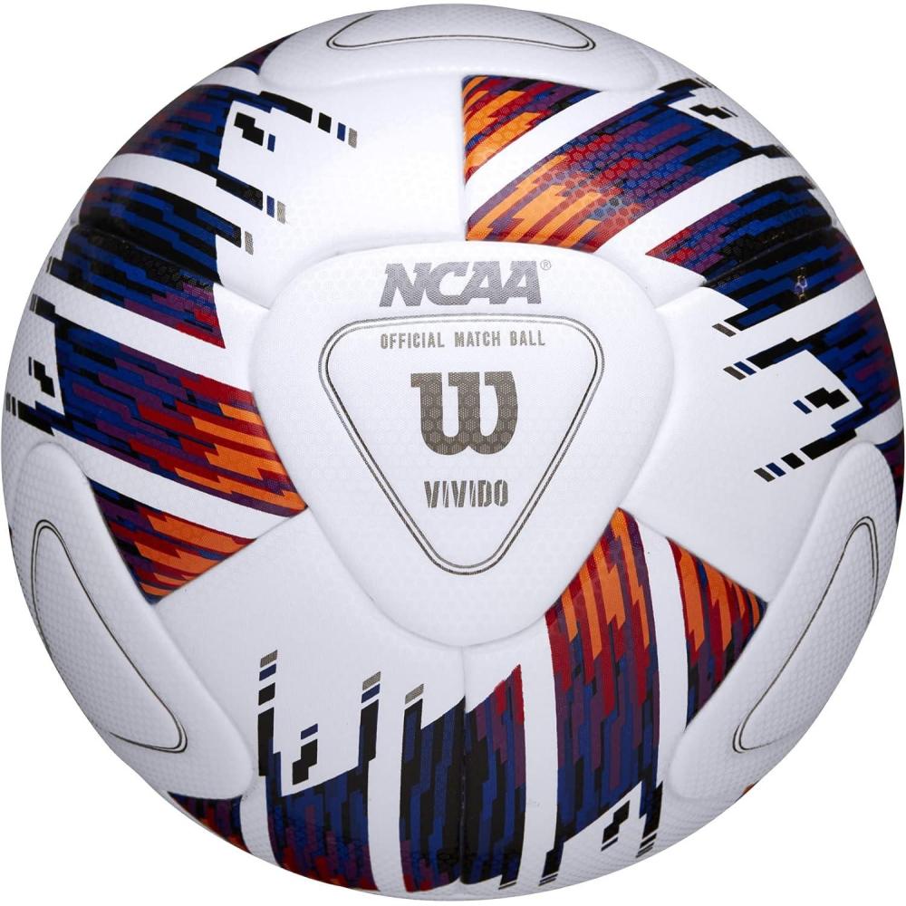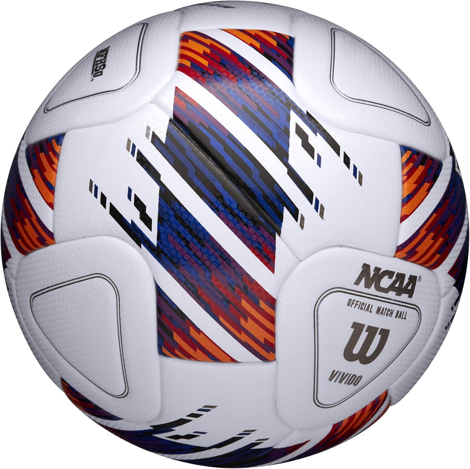 A clear vision of your competition delivered in a 20-panel construction with geometric striking zones. The Wilson NCAA Vivido Soccer ball is built for NCAA competition as the official soccer ball of the Men's and Women's NCAA College Cup Championships. Using Visual spin technology and a cover constructed for precise control this durable soccer ball is ready for elite competition. See the Vivido and track its movement from across the field with a clear vision.