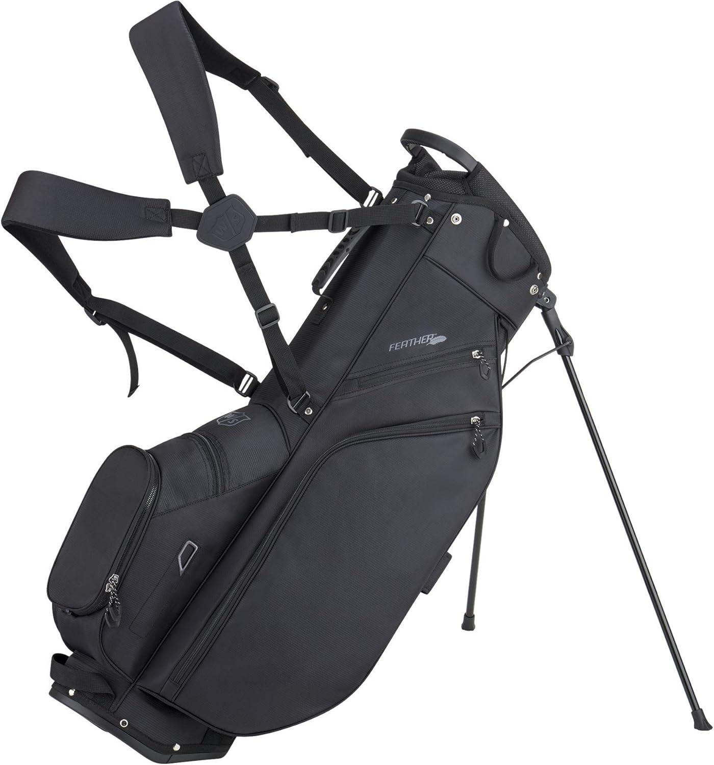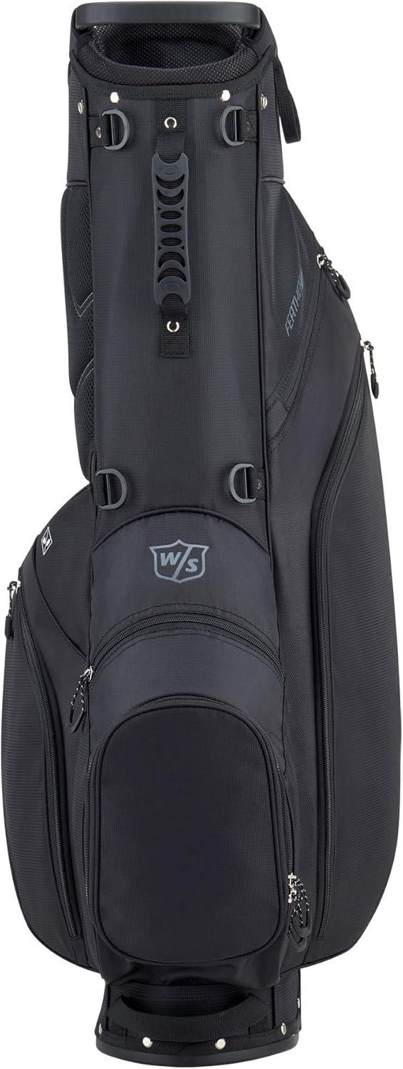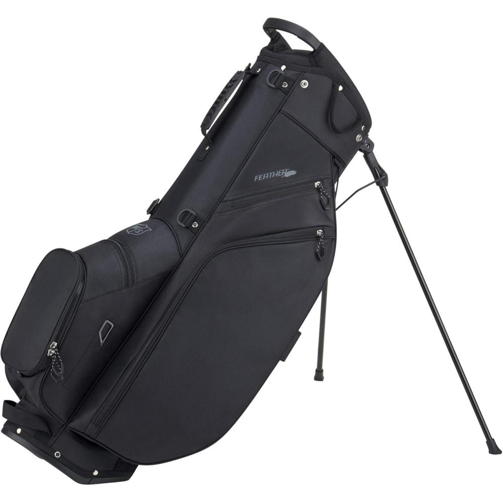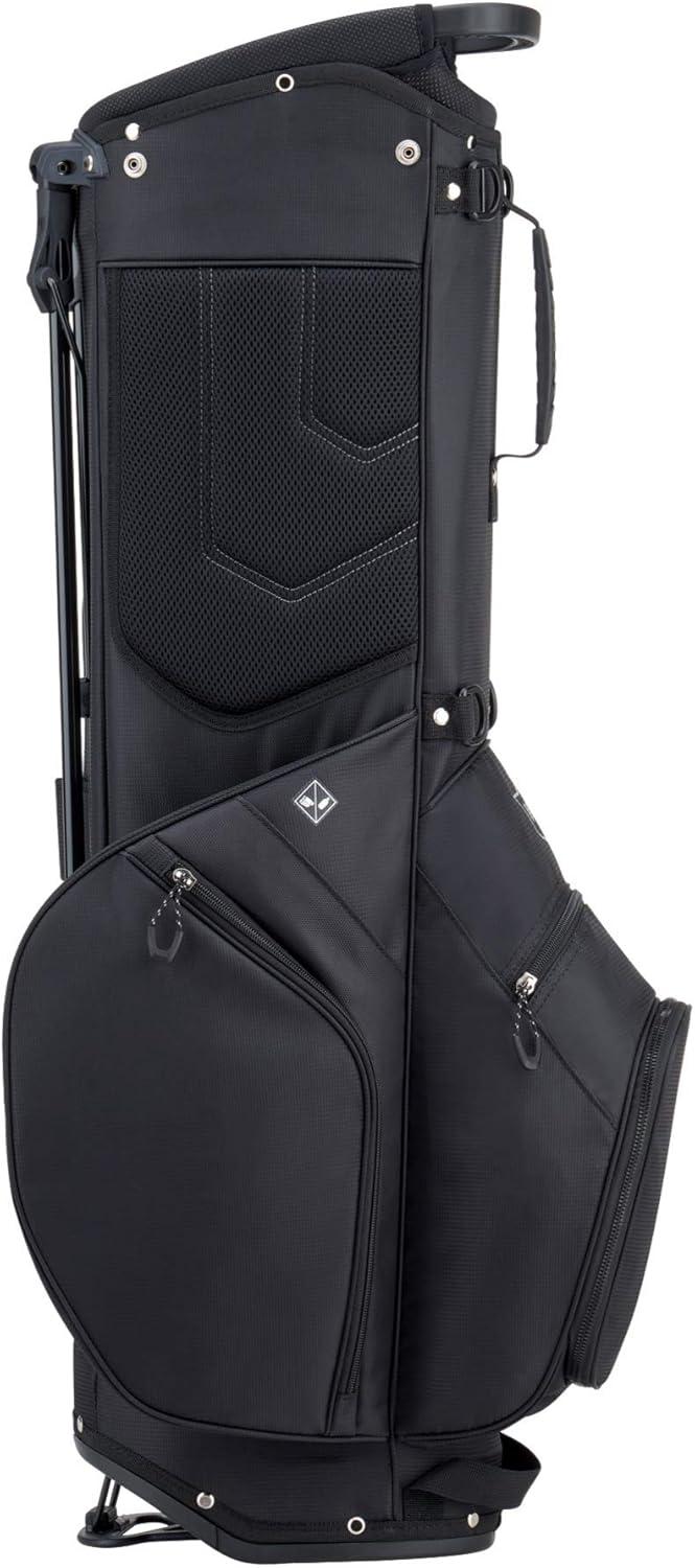The EXO Carry bag features 5 divided club sections, a non-skid base, 3D foam straps, a Dry Tech valuables pocket, a large garment pocket, an accessories pocket, water bottle sleeve and a large ball pocket to keep you organized, while a fully integrated stand keeps everything at hand.