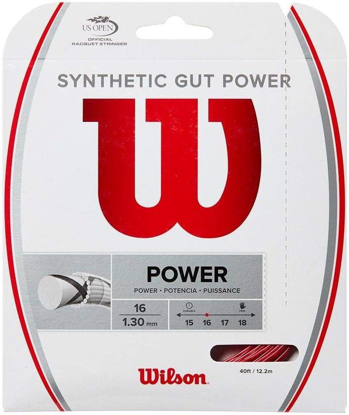 WILSON Synthetic Gut Power Tennis String – Set and 200m Reel, 16 and 17 Gauge(Red)